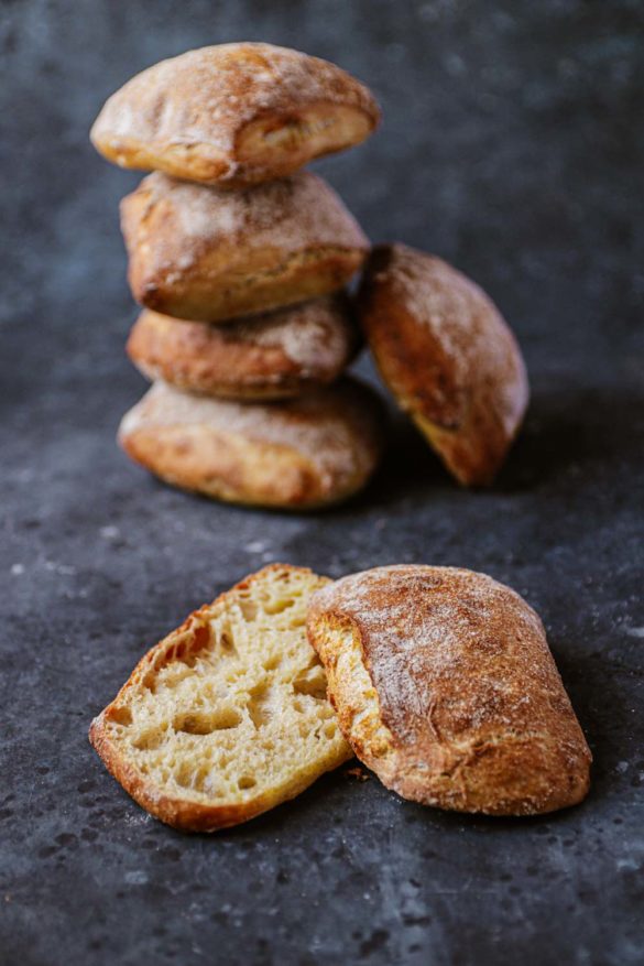 hSaftige Ciabattabrötchen mit gekochten Kartoffeln für noch mehr Geschmack in der No Knead Variante.